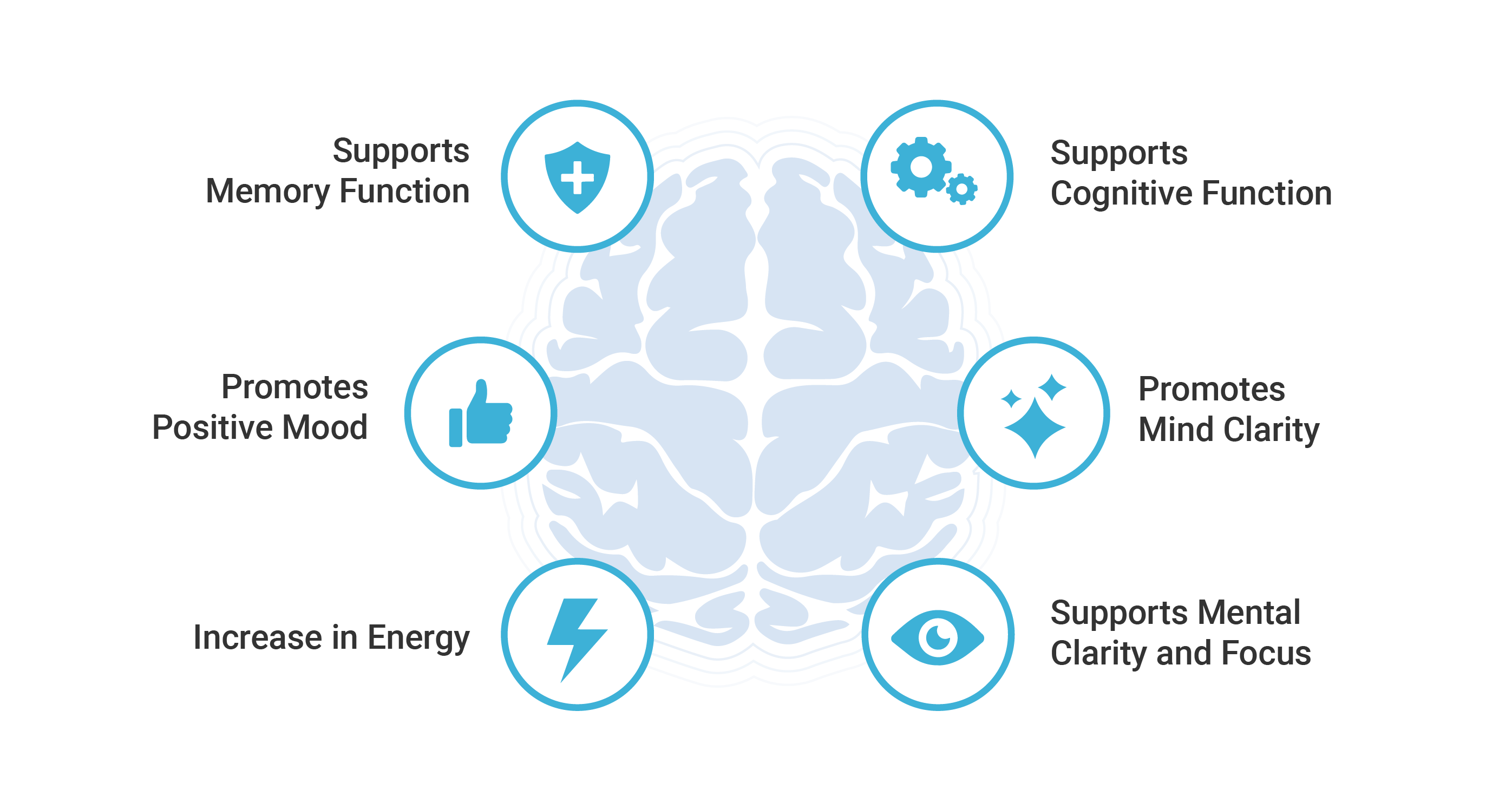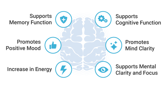 Ginkgo Biloba may help increase uptake of glucose (broken down sugar) by brain cells, it has the potential to improve the transmission of nerve signals responsible for memory, mood and task completion.